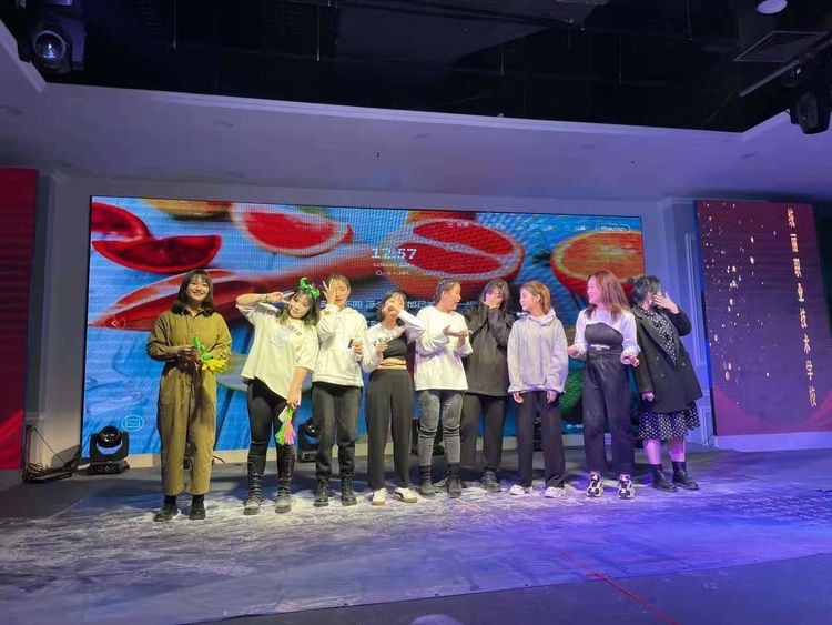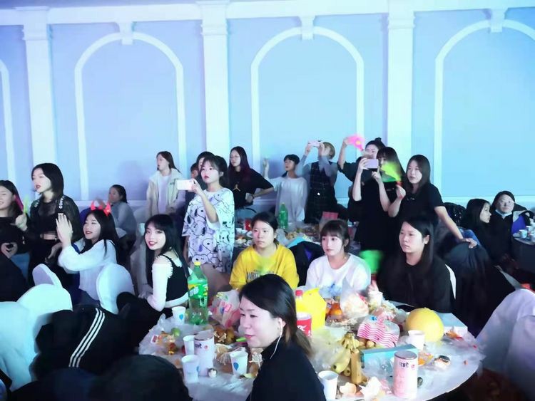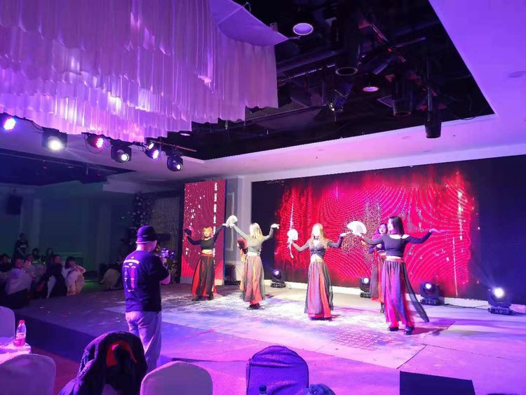 在颁奖仪式喜庆的氛围下,联欢会的文艺汇演部分正式开始!国际化妆班五位小学员,首先以精彩绝伦的舞蹈串烧“佐客女团”嗨翻全场,美发烫染班带来的“高仿真”独唱曲目“好想爱这个世界啊”同样迎来满场喝彩。亚健康调理师班的舞蹈“可爱摆”、高彩2班的舞蹈“漫步人生”和“虚胖组合”、美发弟子班的吉他弹唱“老男孩”、金牌美容师班的创意舞蹈“黑白腿”、国际纹绣班的舞蹈“Blackpink”、美发剪发班的歌曲串烧.......精彩且令人眼花缭乱的歌舞演出,将现场的气氛一次又一次地推向高潮。
