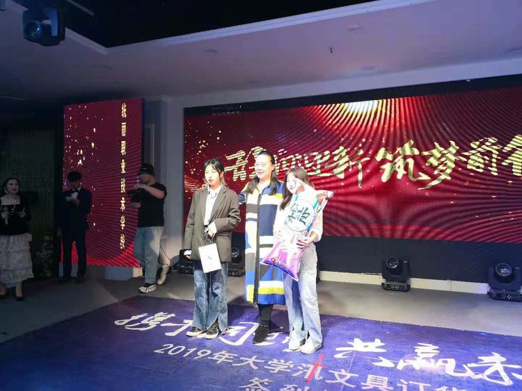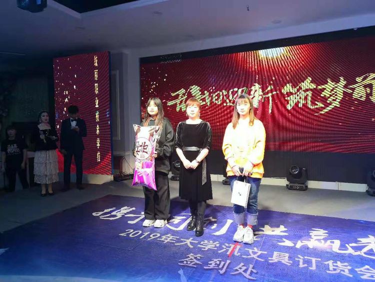 不久前,统丽学校承办了“盛世新韵中国风”主题百万职工技能竞赛,各个专业参与角逐的作品给人留下了深刻的印象。所谓喜上加喜,借着举办联欢会的契机,两位主持人宣布了在大赛中获得“千人大会人气奖”的选手名单。获奖者逐一登台跟大家致意,郭晓芳校长、姚娟副校长、张洪嫚主任等校领导则亲自为获奖者颁发了丰厚的奖品,并与之合影留念。
