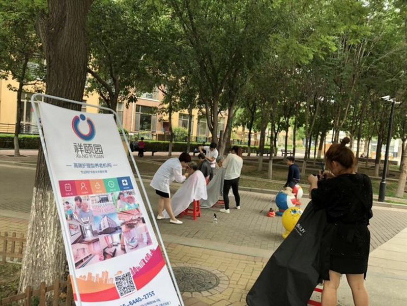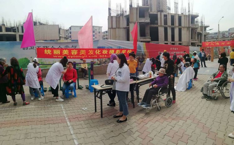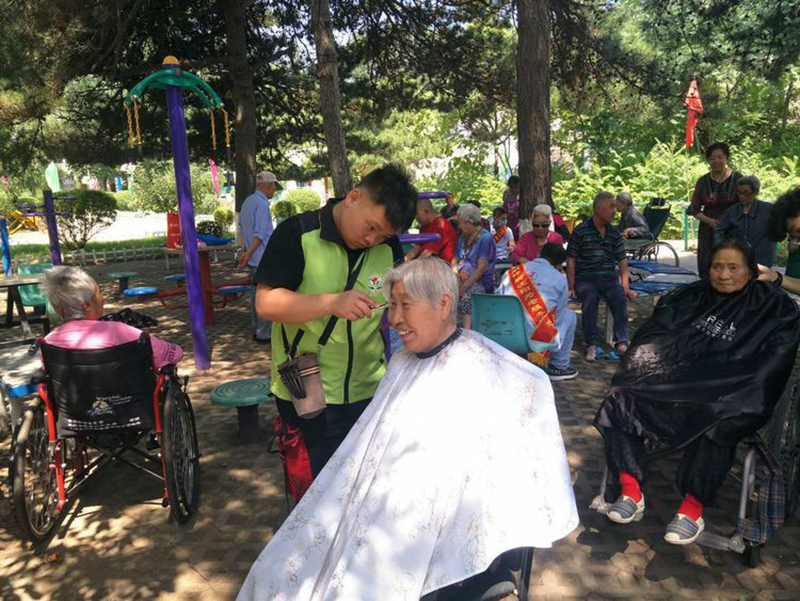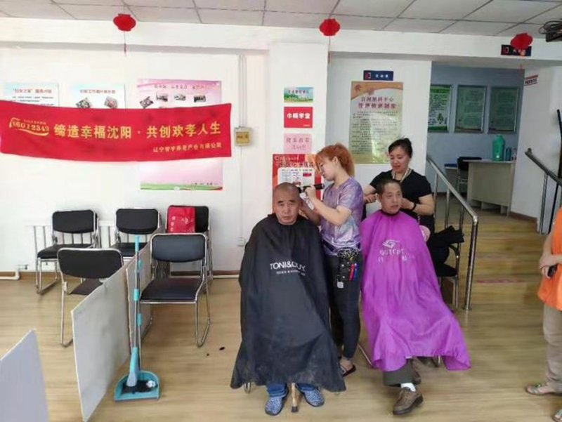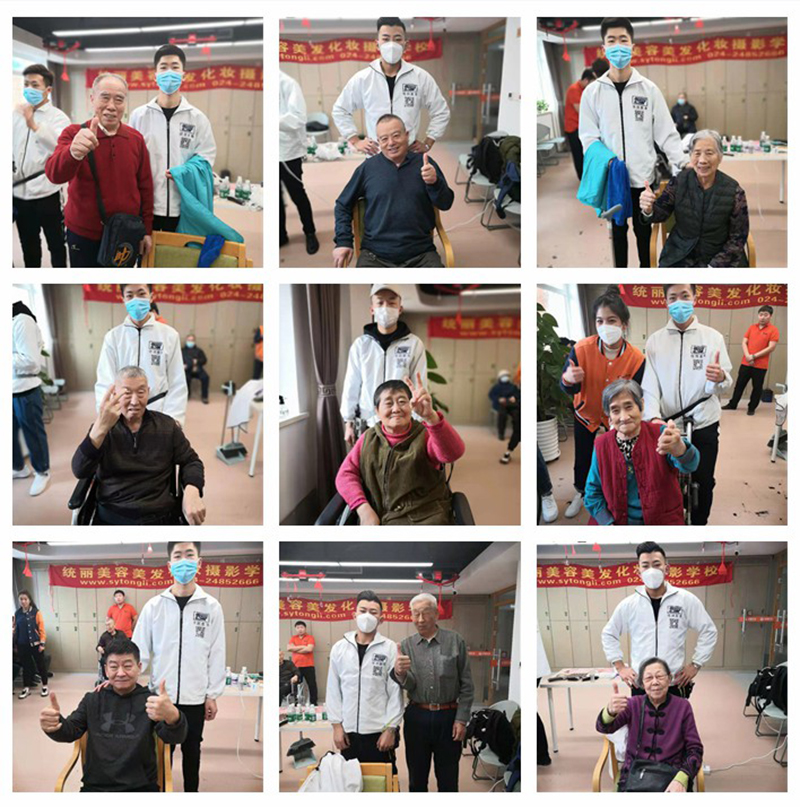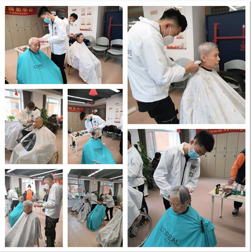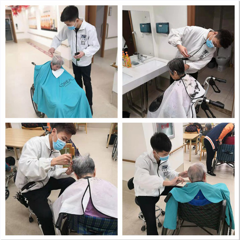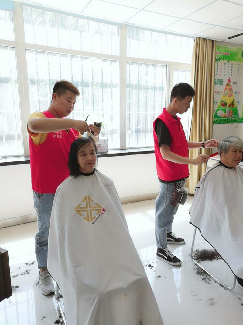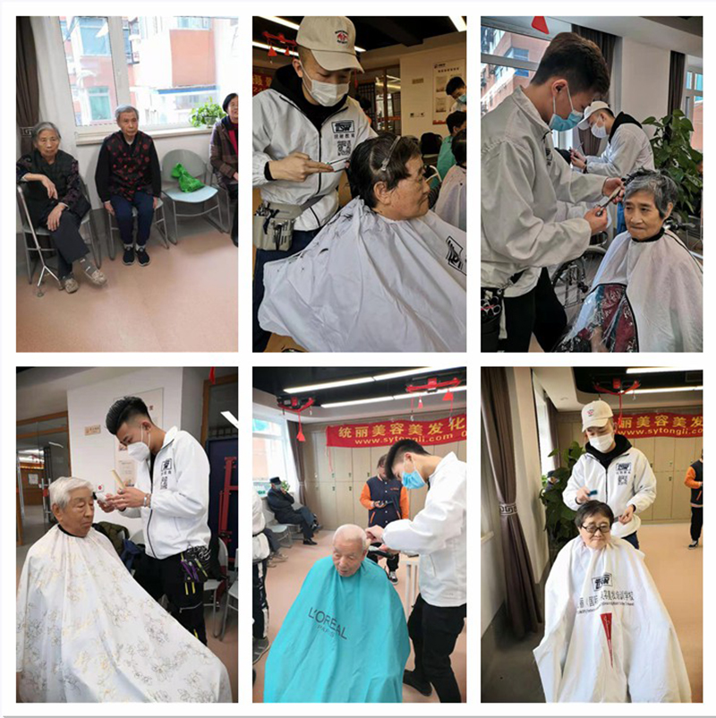 统丽学校的美发精英们先是在社员的带领下参观了养老中心。整洁舒适的环境、齐全的配套设施、服务周到的工作人员,给人留下了深刻的印象。随后,统丽学子在活动中心,开始了忙碌的义剪服务。